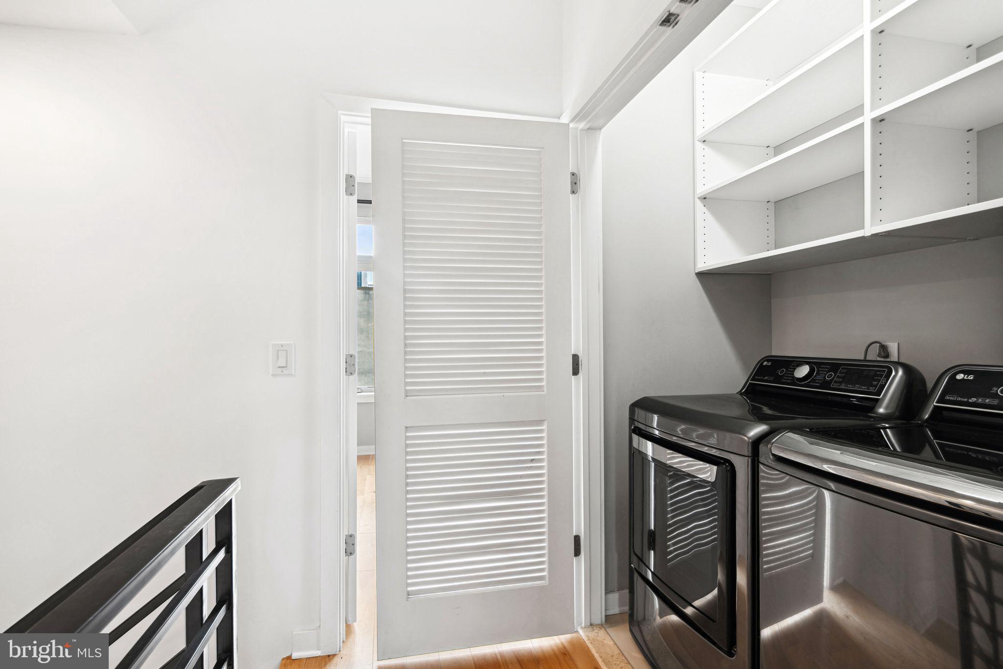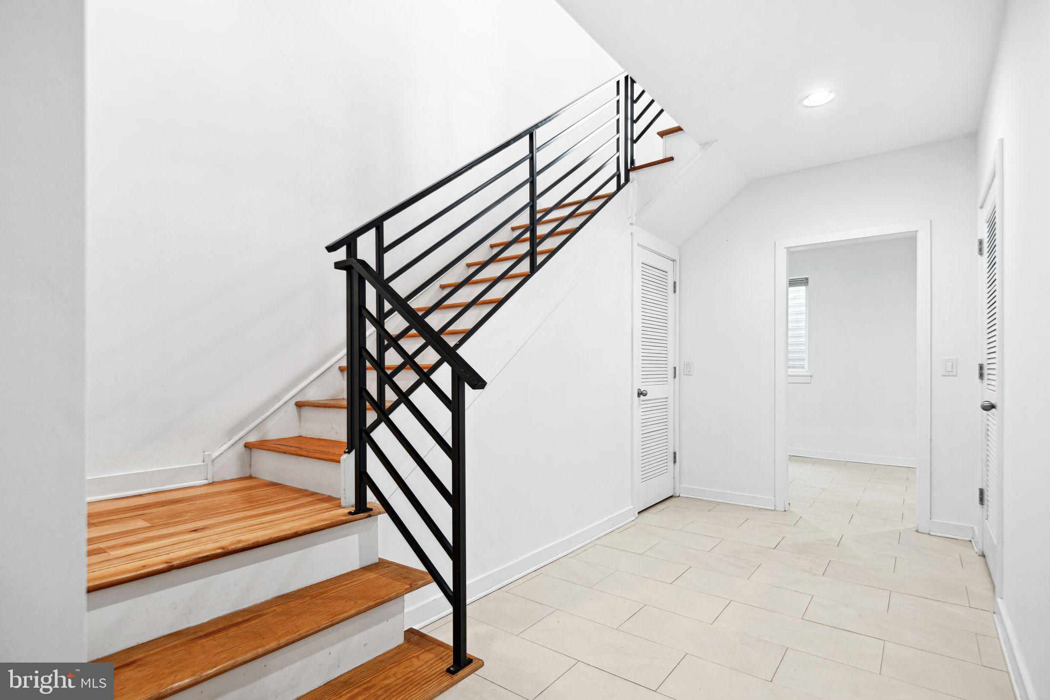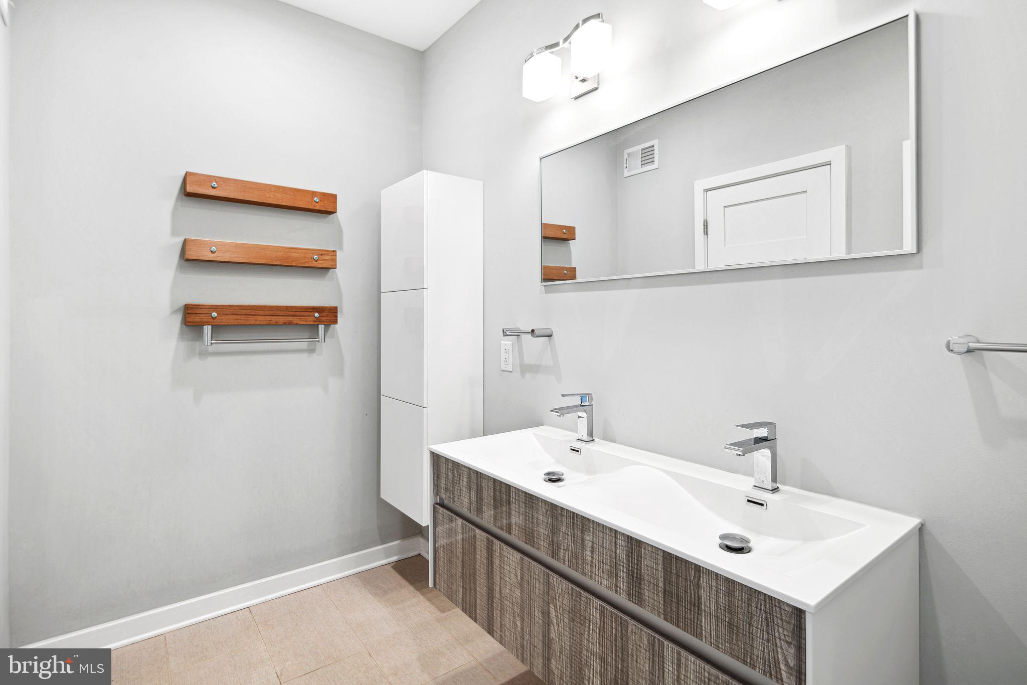 The second floor offers two generously sized bedrooms and a chic, modern hall bath thoughtfully designed with a double vanity and a private area for the tub and toilet--providing both style and added privacy. An upper-level laundry room is conveniently located nearby, adding a practical touch that makes daily life feel seamless.